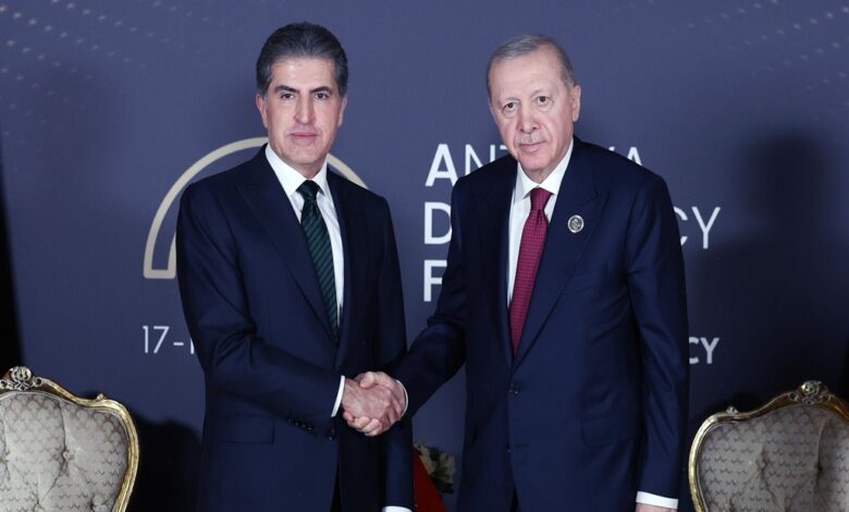 Cumhurbaşkanı Recep Tayyip Erdoğan, Antalya Diplomasi Forumu (ADF2026) kapsamında Irak Kürt Bölgesel Yönetimi (IKBY) Başkanı Neçirvan Barzani ile bir araya geldi. Görüşmede bölgesel çatışmalar, petrol arz güvenliği ve Kalkınma Yolu Projesi ele alındı. İletişim Başkanlığı’nın sosyal medya hesabından yapılan açıklamaya…