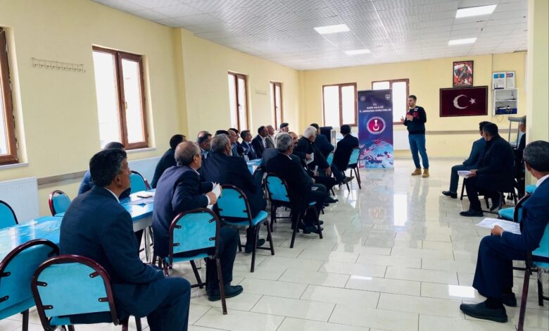 Kars İl Jandarma Komutanlığı Siber Suçlarla Mücadele Şube Müdürlüğü ekiplerince, Arpaçay ve Sarıkamış ilçelerinde görev yapan köy ve mahalle muhtarlarına yönelik “Siber Farkındalık ve Bilinçlendirme Eğitimi” düzenlendi.