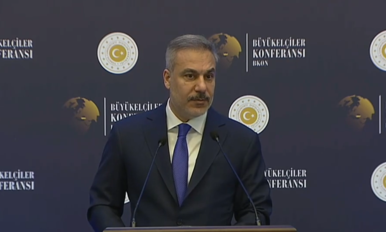 Fidan, son 15 yılda Suriye sahasında Türkiye’nin tarihi bir sınav verdiğini belirterek, “Suriye sahasında stratejik ve diplomatik olarak alnımızın akıyla çıktık. 8 Aralık 2024, Suriye halkı için yeni bir umut sayfasının açıldığı bir milat oldu. Ancak Suriye’de işimiz aslında yeni başlıyor. Dış müdahalelerden arınmış, istikrarlı bir Suriye, bölgemiz için büyük bir artı değer olacaktır. Türkiye, dost ve kardeş Suriye halkının yanında olmaya kararlılıkla devam edecektir” açıklamasında bulundu.